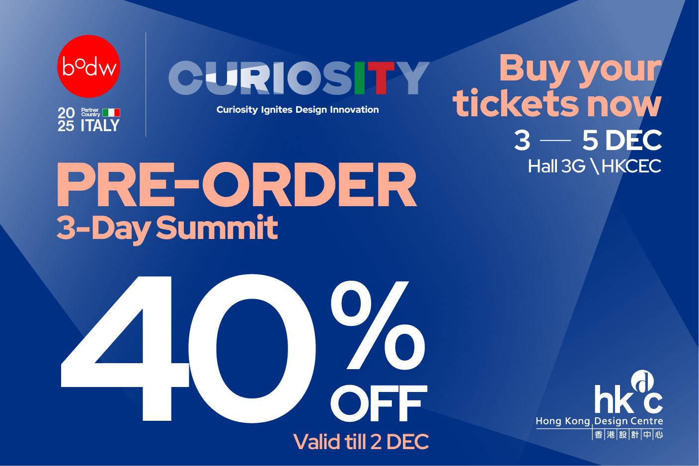 Business of Design Week (BODW), Asia's premier annual event on design, innovation, and brands since 2002, connects global design masters, brand leaders, and entrepreneurs to explore innovation, spark inspiration and unlock business opportunities. Italy is the partner country for BODW in 2025. Early Bird Offer available now! 3-Day Pass for only HK$799 (original HK$2,700), Offer ends 12 October — secure your spot today!
