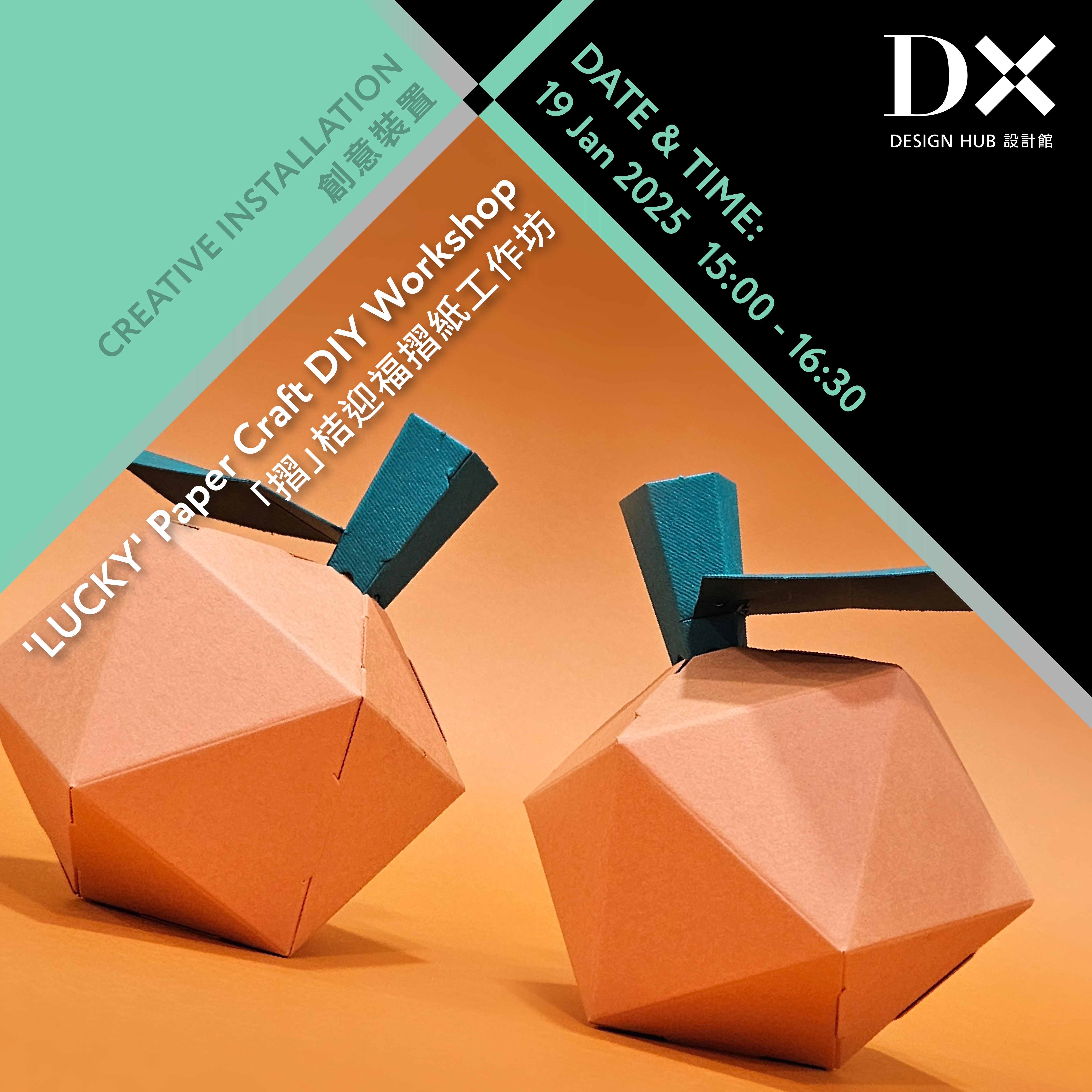 As Chinese New Year is approaching, Stickyline presents this paper mandarin decoration. During the workshop, participants will make a vivid mandarin through simple paper folding, bring them home as decoration to produce more festive atmosphere. At the same time, Stickyline will share the use of paper to design different installations or decorations, inspiring your infinite possibilities!