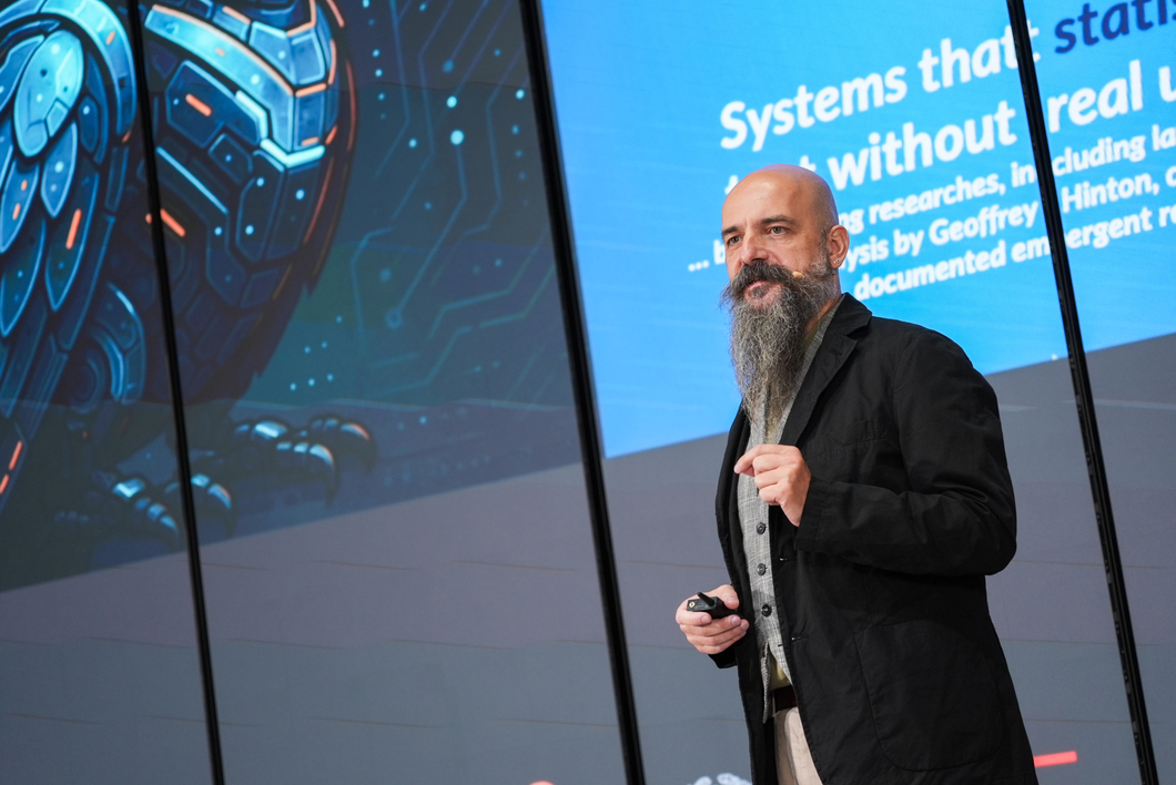 POLI.design 行政总裁 Cabirio Cautela 教授以主题演讲「设计思维的兴衰」揭开序幕,提出发人深省的追问。他没有为既有框架辩护,反而邀请参加者思考:「当既定模式不再回应当今世界的複杂性时,会发生什麽?我们又如何重新思考学习、创造与协作的方式?」这份对设计思维成就与局限的坦诚,为整天活动定下基调——关注的是演进,而非固守。