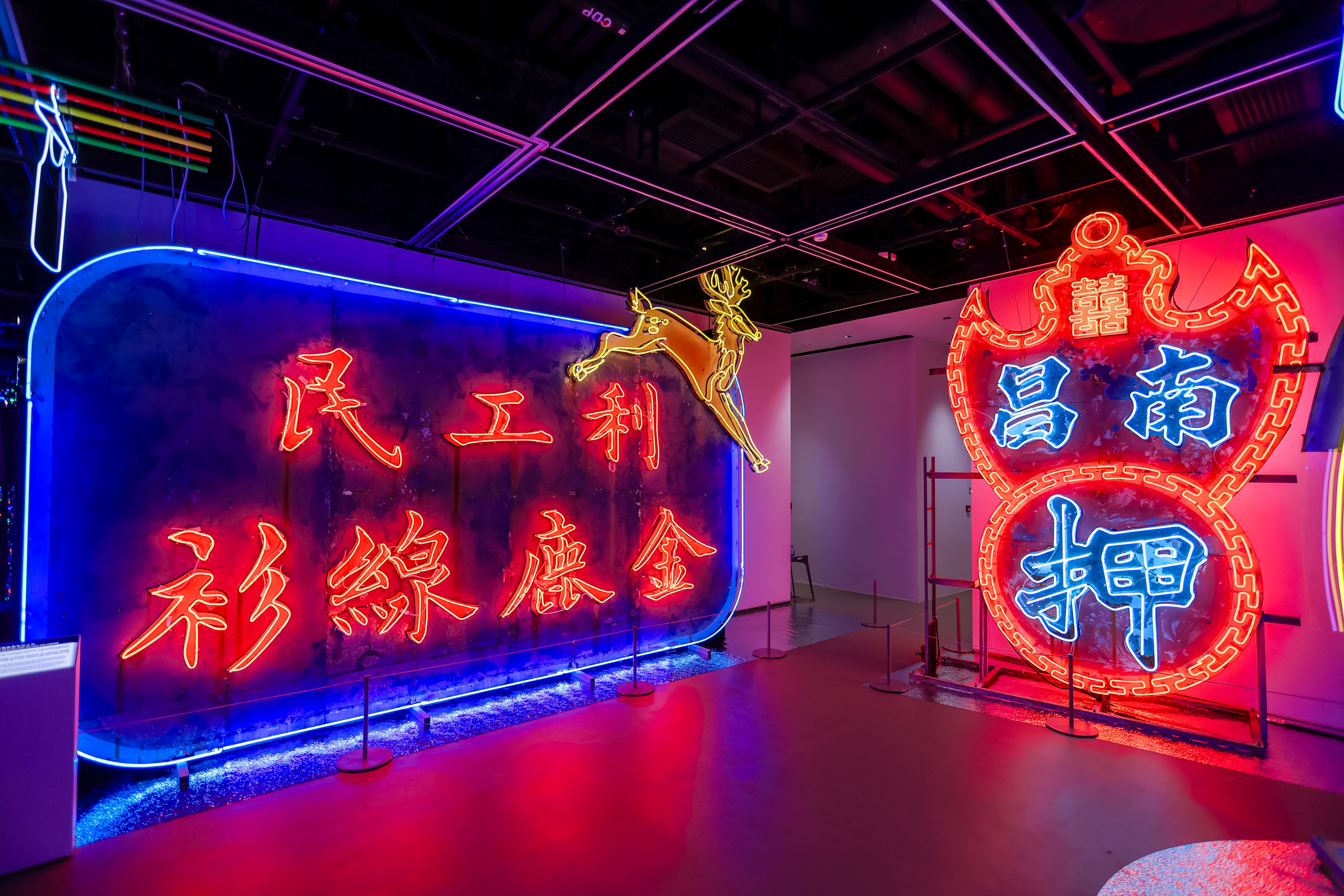 我们很高兴在这次新展览中再度呈现几个经典的招牌,包括在九月拯救的金凤大餐厅、邻近的油麻地太平馆餐厅、南昌大押以及大昌眼镜中心启发自雷朋太阳眼镜框的霓虹招牌等珍贵的历史瑰宝。与这些重现光彩的旧日标誌同时展出的还有新晋当代霓虹艺术家大胆的平面和立体作品。艺术家将霓虹推向前所未有的境界,突破设计审美和技术的界限。